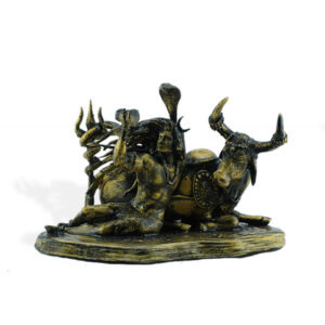 Handcrafted Lord Shiva with Nandi Idol – Antique Golden Finish | Spiritual Home Décor Statue – Golden Antique, 10.16 cm