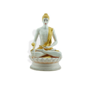 Buddha Idol for Home Decor – Antique Gold Painted | Meditation Statue for Temple, Car Dashboard & Gifts – White with Gold Details, 10.16 cm