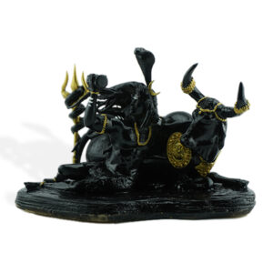 Handcrafted Lord Shiva with Nandi Idol – Antique Golden Finish | Spiritual Home Décor Statue – Black with Golde Details, 10.16 cm
